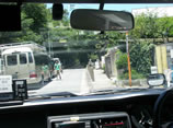 いつもの三叉路。今日はタクシーです。
