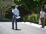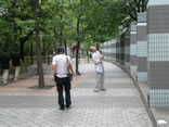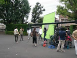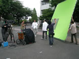 今度は、僕の正面にクレーンの先端に付いたカメラがきます。 僕はまたしても丸く歩き、僕の後ろから大布がついてきます。