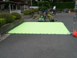 ただ歩くのではありません。緑の大布も、僕の外側を移動するのです。僕は白いマークに沿って、丸く歩きます。