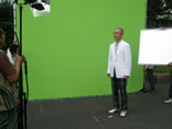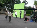 それが、なんとも奇妙なロケです。見てください、大きな緑の布です。