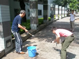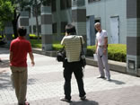 恐らく面識のない年配の男性が、猛暑の日差しの中、すれ違っています。
