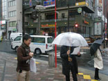 いつもの交番。雨に煙っている。