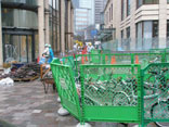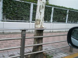 ガードレールがプラタナスに食い込んでいる。