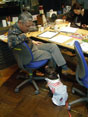 打ち合わせの邪魔もする。