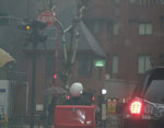 いつもの工事現場。冷たい雨の中の工事は厳しい。